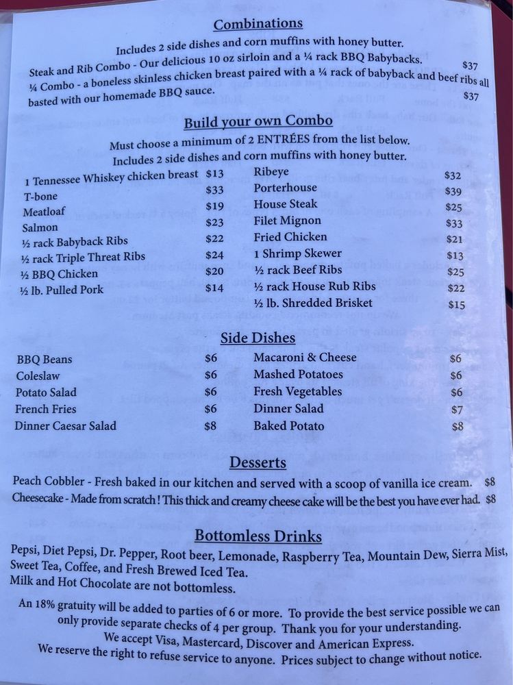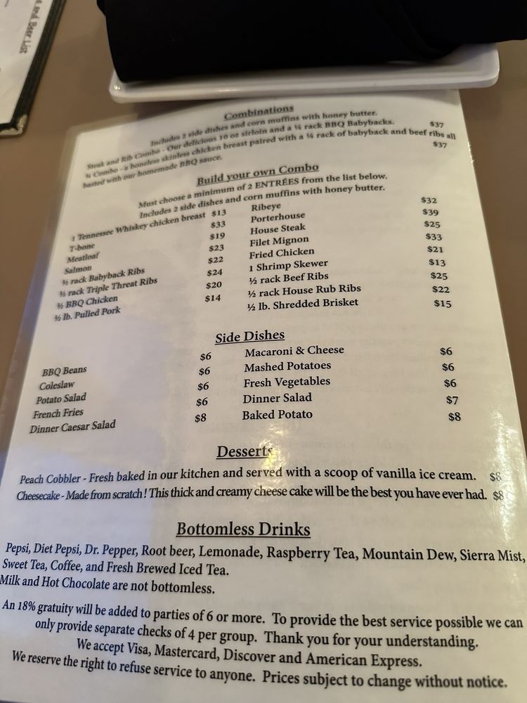 Our delicious oz sirloin and a / rack bbq babybacks.