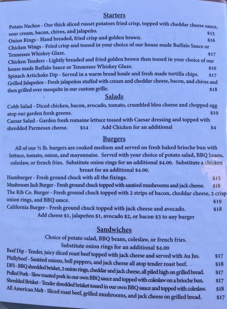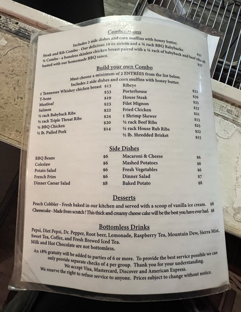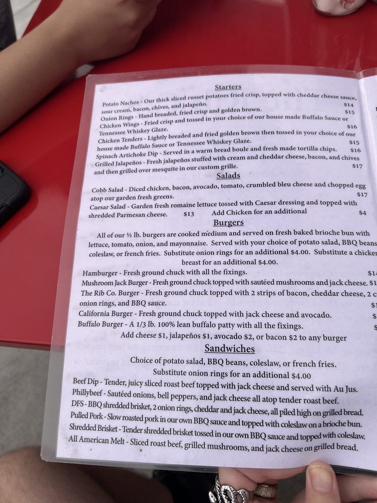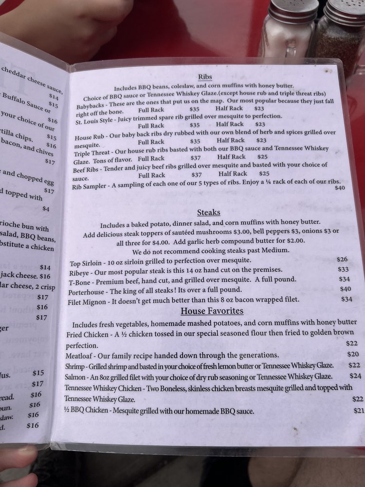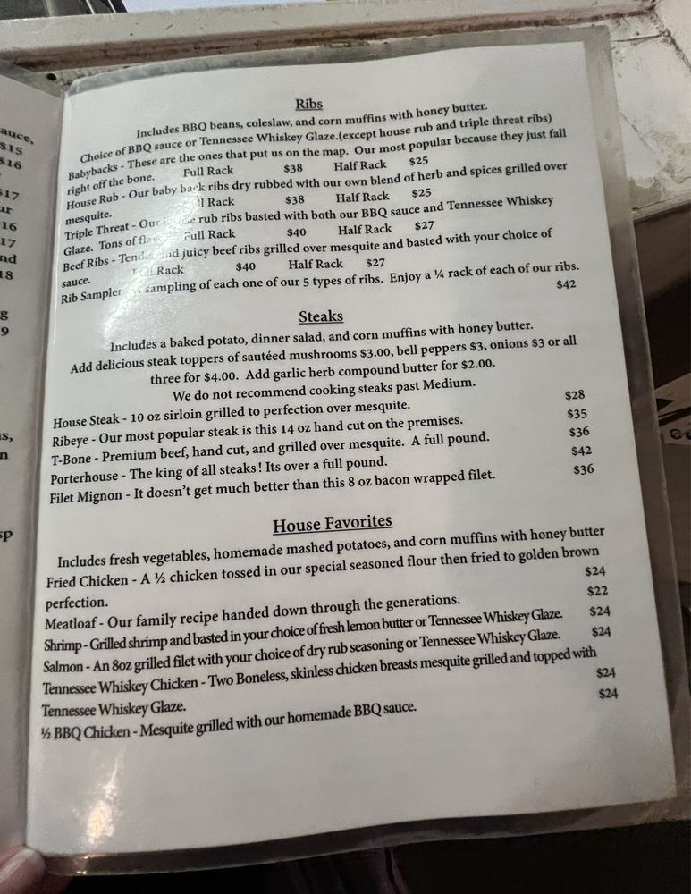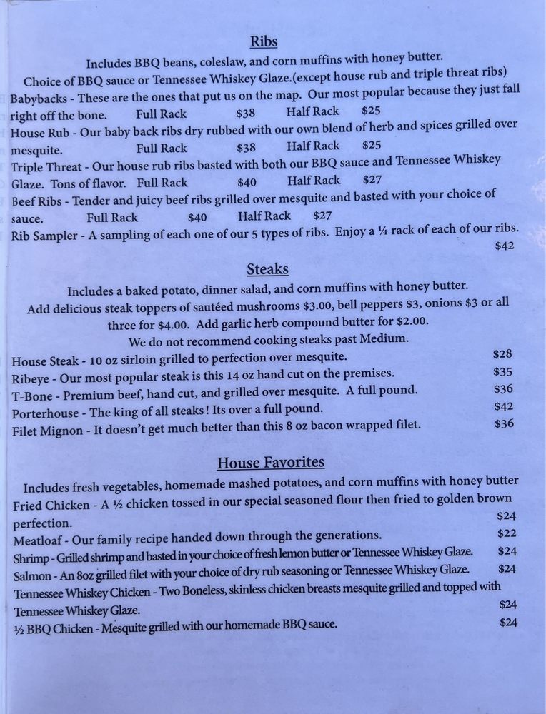 Our house rub ribs basted with both our bbq sauce and tennessee whiskey glaze. Tons of flavor